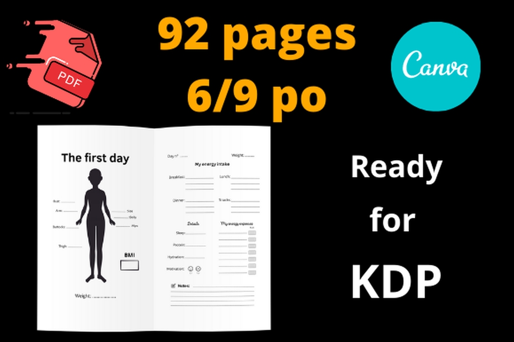 Diary of weight loss follow-up in 90 days. The objective is to note the evolution of his weight to keep motivation and see his progress. A diary that will sell every day and has a sales peak for the new year with good resolutions. You will find in this notebook: ►A canva link to modify the file ►A PDF file ready to be uploaded to KDP ►Files in png versions ►A kdp format of 6 by 9 inches